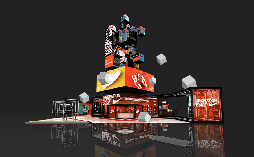 春及传媒旗下数字艺术厂牌(DATALAVA)与耐克联动,用“艺术+技术”的方式在上海进博会为参观者们带来了一场顶级的AR视觉盛宴,现场无数的立方体在空中涌动、消融、重组的过程中展示了NIKE百年沉淀下的每一次创新之举,用最强的交互带来最佳的沉浸式体验,创新绝不停。